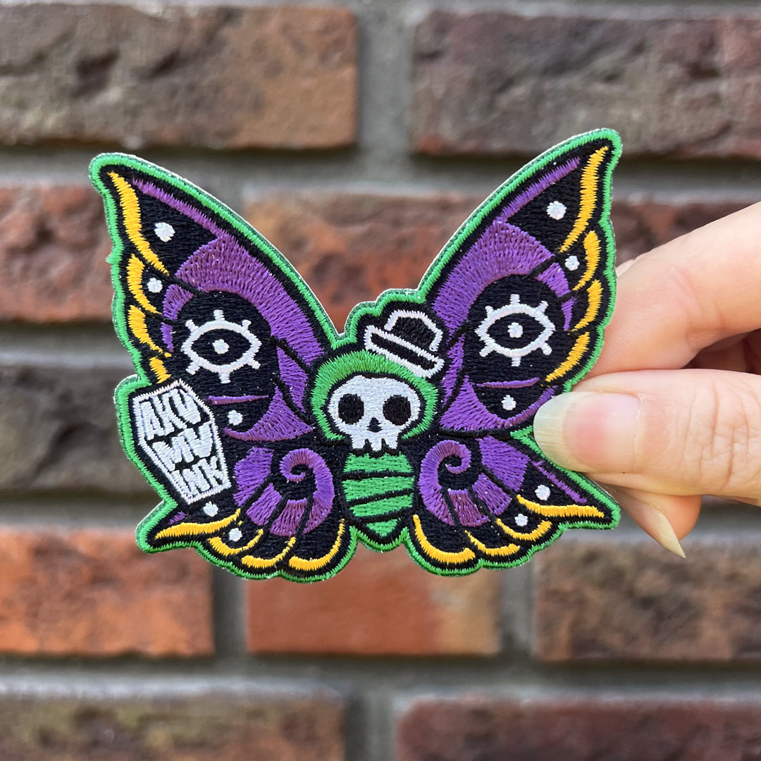 Butterfly embroidered patch with iron-on backing. Size 7cm (3") high.
