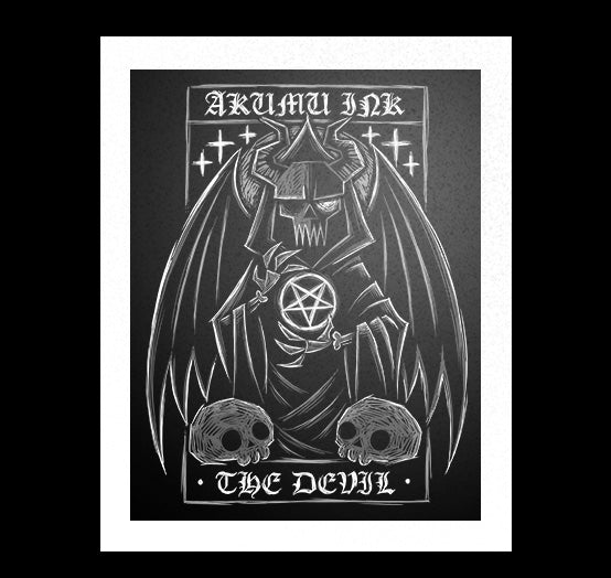 This design features hand-drawn artwork. The Devil tarot card features a towering, horned figure with a hypnotic gaze and sinister grin. His bat-like wings symbolize temptation and entrapment, while half his face, shrouded in darkness, represents the unknown. Along with our other occult designs, this artwork symbolizes the uncertainty of our future, at the same time creating a void that gives hope for what may come.