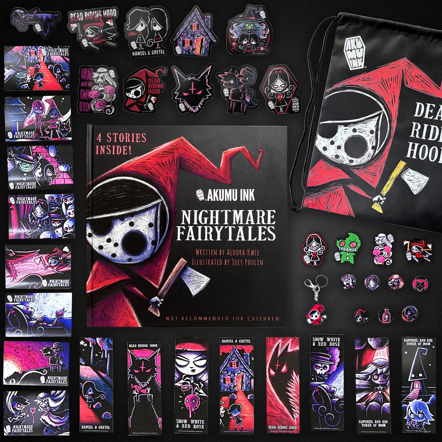 Experience a hauntingly beautiful twist on classic fairytales with the creative talents of Aldora and Joey, co-owners and artists of Akumu Ink. Our uniquely creepy yet cute perspective will captivate you as you journey through our nightmare world, filled with gorgeously illustrated pages. Get lost in the pages of our enchanting and eerie creation. Click here to view more images and story details.