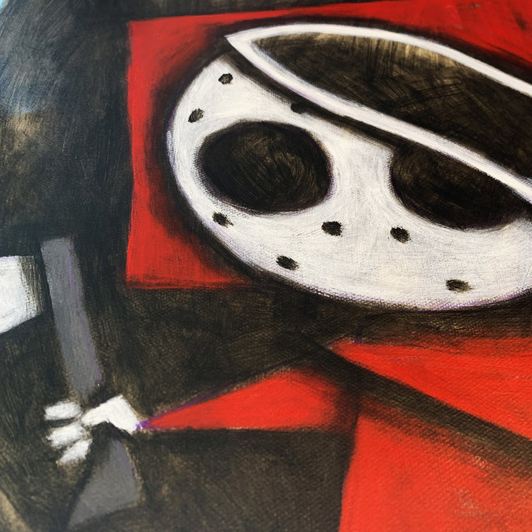 This piece was fun because I wanted to revisit my earliest painting technique but with my current knowledge. Just 3 years ago I was very hesitant about how to use the paint to achieve the look I wanted, now I was very confident in creating this image. This is a return to form in using a very limited colour palette to create something vibrant and eye-catching. Based on our Dead Riding Hood character from our Nightmare Fairytales storybook.