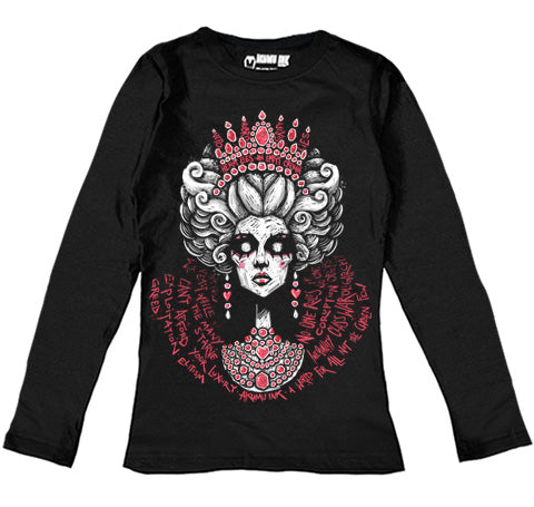 - Available in a women's black 100% cotton long sleeve t-shirt.