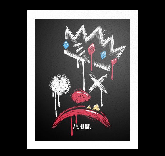 This design features hand-drawn artwork titled King of Klowns. A satirical commentary on power and leadership, the piece portrays a world where the one wearing the crown is nothing more than a clown, blending dark humor with sharp political critique.