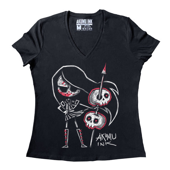 Tokyo the Impaler Women Vneck – gothic Women Shirts by Akumu Ink, alt fashion art from Akumu Ink Clothing